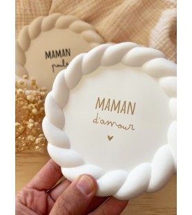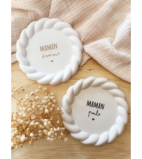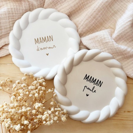 Une jolie coupelle en résine, disponible en deux coloris et avec deux messages au choix, pour gâter les mamans à l’occasion de la fête des mères, de Noël, d’un anniversaire ou simplement pour leur dire « je t’aime ».