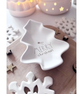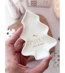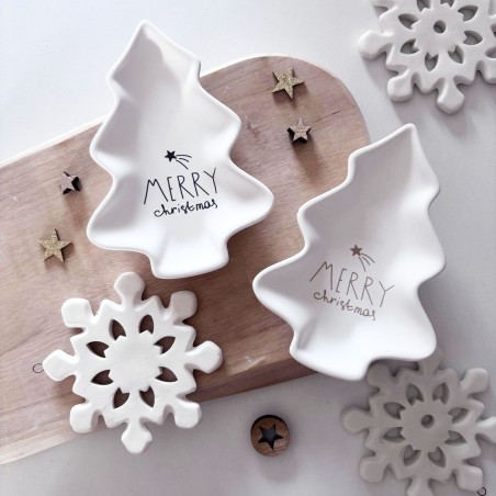 Apportez une touche de poésie et de douceur à votre décoration de fêtes avec la coupelle sapin “Merry Christmas” imaginée par Atelier Roz & Lou.