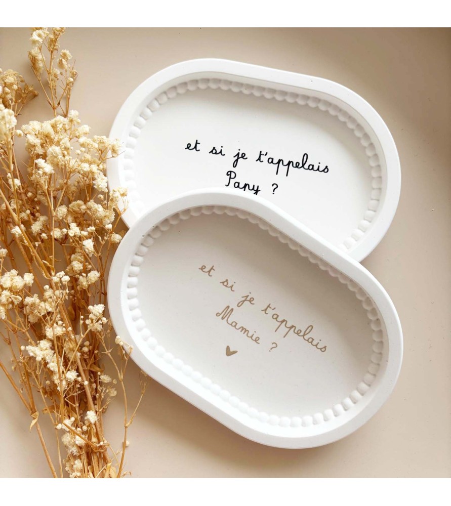 Coupelle ovale perlée en résine naturelle, idéale pour annoncer une grossesse avec émotion et délicatesse. Un objet décoratif symbolique à offrir pour créer un souvenir inoubliable.