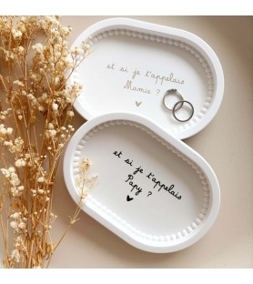 La coupelle est proposée en coloris blanc, avec un texte inscrit en noir ou en beige doré selon l’ambiance souhaitée. Plusieurs textes sont disponibles afin de personnaliser l’annonce et de l’adapter à chaque proche concerné. Elle peut ensuite être utilisée comme vide-poche ou objet décoratif, conservant ainsi toute la valeur émotionnelle de l’annonce.