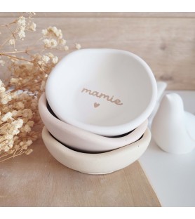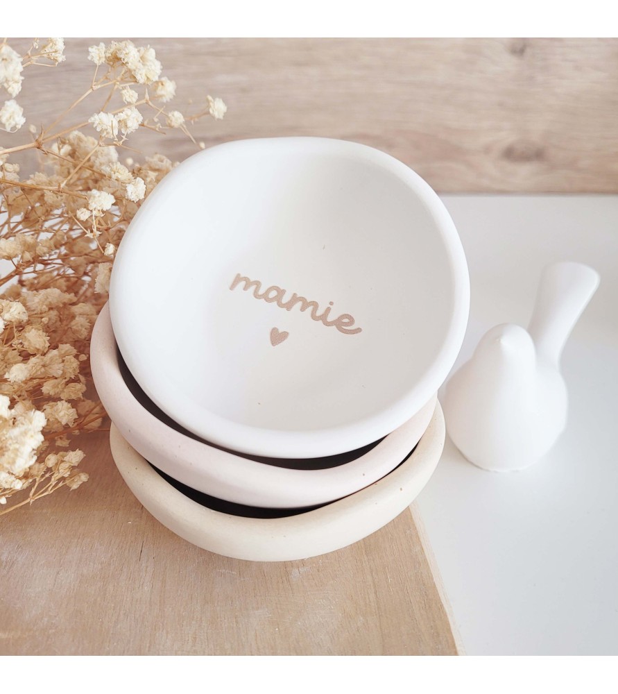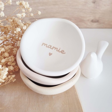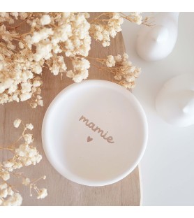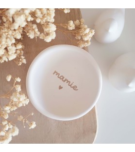 Une élégante coupelle ovale à message, disponible en blanc ou beige rosé, idéale pour faire plaisir à une maman ou une mamie avec un cadeau doux, utile et plein d’amour.