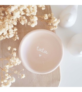 Une douce coupelle en forme de cœur, personnalisable avec le prénom ou le mot de ton choix (papa, mamie, tonton…). Réalisée à la main, elle est idéale pour une jolie annonce de grossesse ou un cadeau tendre pour la famille.