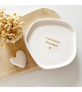 Une délicate coupelle en forme de cœur, entièrement réalisée à la main, avec le tendre message “N’oublie jamais combien je t’aime”. Une création poétique signée Atelier Roz & Lou, à offrir à une personne chère à son cœur.