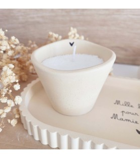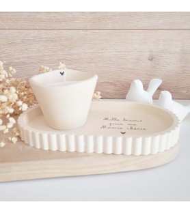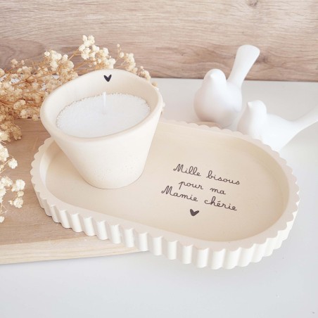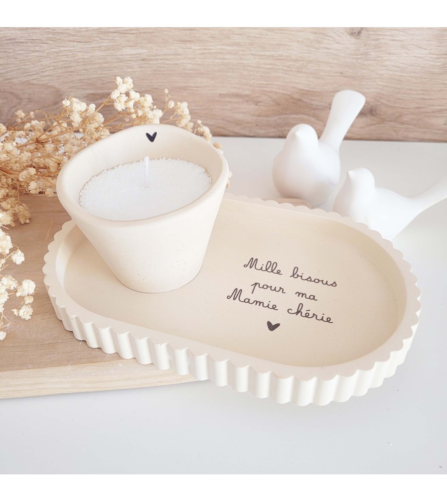 Un ensemble délicat et plein de tendresse composé d’une coupelle ovale et de son petit pot bougie rechargeable, imaginé pour faire plaisir à une mamie exceptionnelle. Un cadeau décoratif et utile, parfait pour transmettre un message d’amour à l’occasion de la fête des grands-mères, d’un anniversaire ou simplement pour dire « je t’aime ».