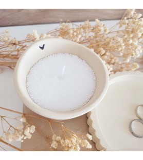 Le petit pot bougie est fourni avec sa cire en poudre délicatement parfumée ainsi qu’une mèche, permettant de créer facilement une bougie rechargeable. Une fois la bougie consumée, le pot peut être réutilisé comme vide-poche, petit rangement ou objet décoratif, prolongeant ainsi la vie de cette création.