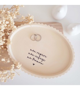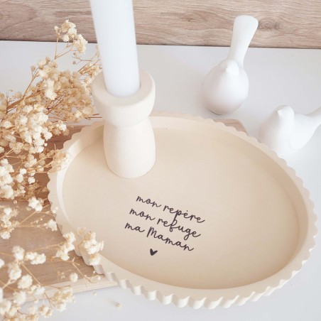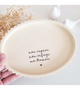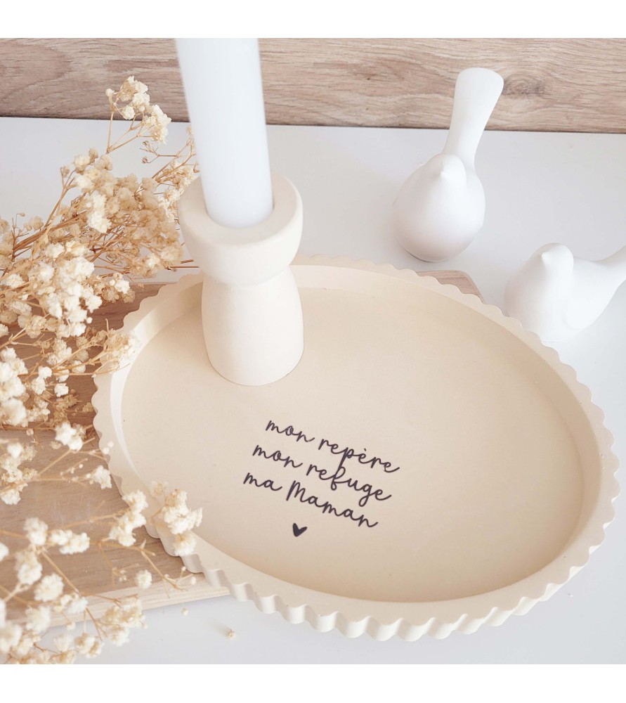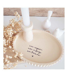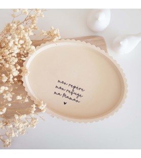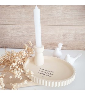 Le plateau ovale, de coloris beige sienne, est sublimé par un message plein d’amour dédié aux mamans. Le bougeoir peut être placé directement sur le plateau pour créer une composition harmonieuse, ou utilisé séparément selon vos envies de décoration.