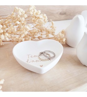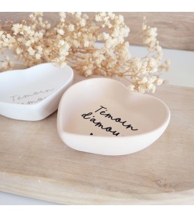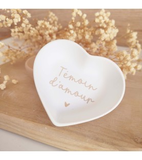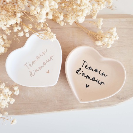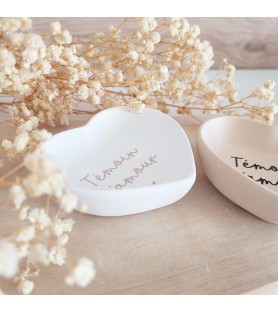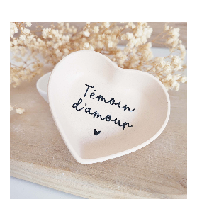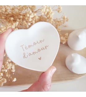 Une délicate coupelle en forme de cœur, pensée comme une attention pleine de sens pour remercier un témoin ou faire une jolie demande à l’occasion d’un mariage.