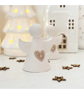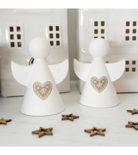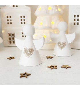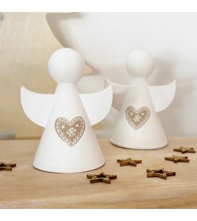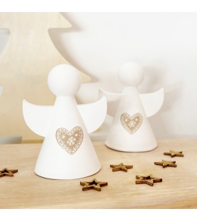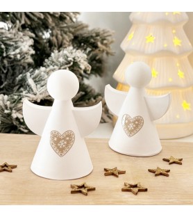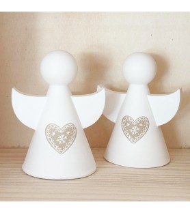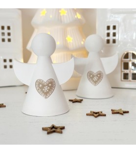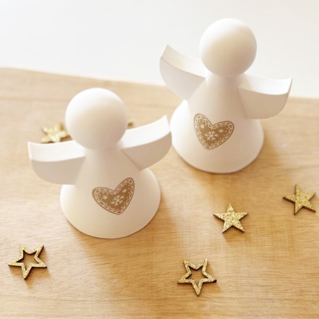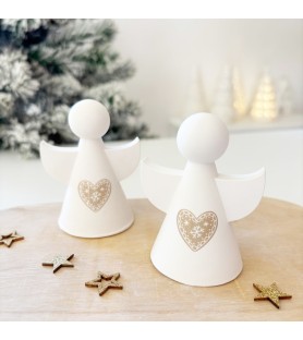 Ce joli lot de deux petits anges décoratifs en résine naturelle est entièrement réalisé à la main, du moulage au ponçage. Chaque ange est orné d’un cœur délicatement gravé, inspiré de l’esprit de Noël et du charme scandinave. Leur design minimaliste et leurs lignes douces en font une décoration élégante, parfaite pour habiller une table, une étagère ou une cheminée pendant les fêtes.