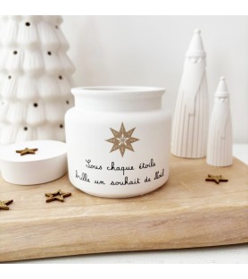 Chaque pot est orné d’une délicate étoile dorée et d’une inscription inspirante : « Sous chaque étoile brille un souhait de Noël ». Un message rempli de douceur qui évoque la magie et la chaleur des fêtes de fin d’année.