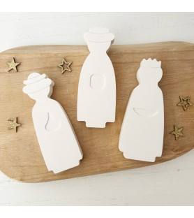 Leur design épuré et leur finition mate reflètent l’univers poétique et minimaliste de la collection Atelier Roz & Lou. Chaque Roi mage porte un symbole discret, rappelant leurs présents traditionnels — or, encens et myrrhe —, pour un rendu élégant et symbolique.