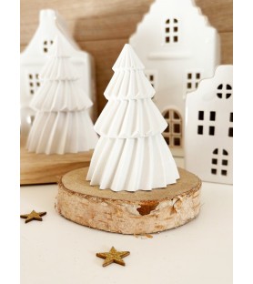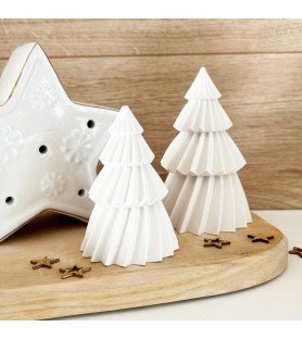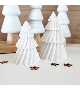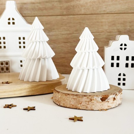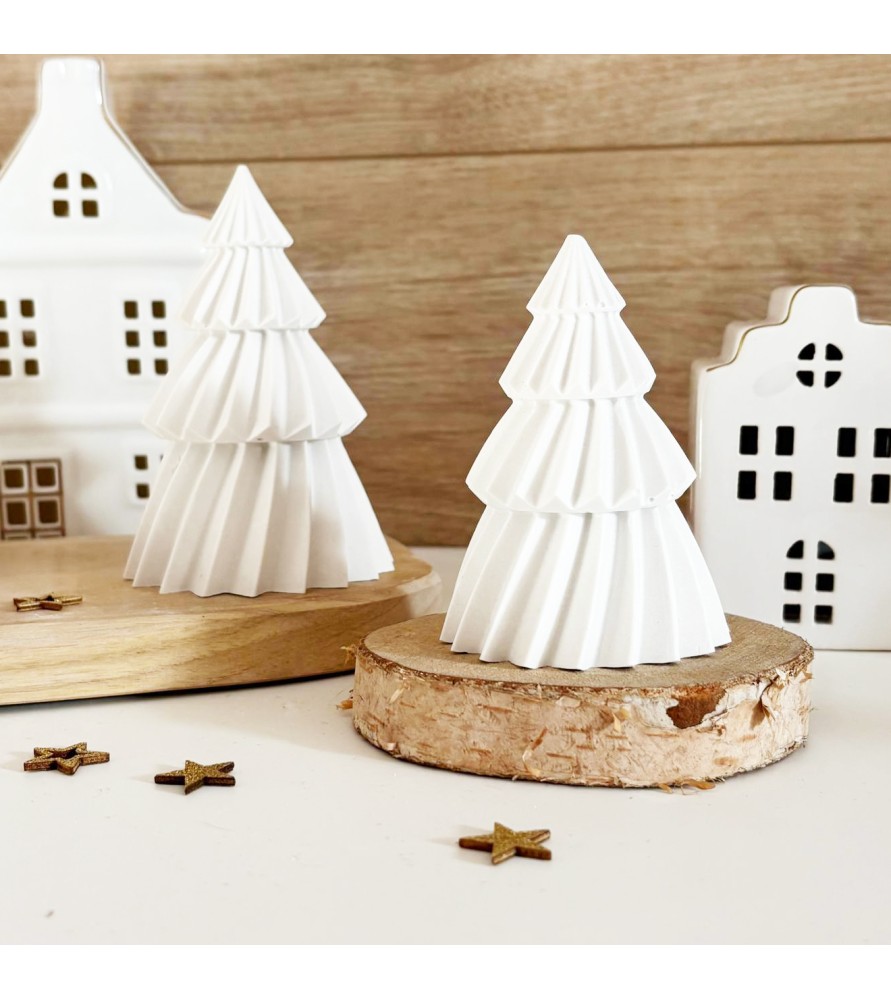 Ces deux sapins décoratifs sont entièrement fabriqués à la main dans l’Atelier Roz & Lou, où chaque pièce est soigneusement moulée, coulée puis poncée pour révéler une silhouette parfaite et un blanc mat apaisant. Leur design plissé, tout en légèreté, apporte un charme intemporel à la décoration de Noël. Avec leurs lignes délicates et leur finition douce, ils s’intègrent aussi bien dans une ambiance scandinave que dans une décoration chaleureuse et traditionnelle.