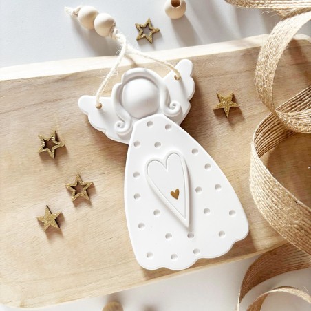 Adorable suspension ange en résine naturelle, façonnée à la main. Un ornement délicat et poétique pour sublimer votre décoration de fêtes.