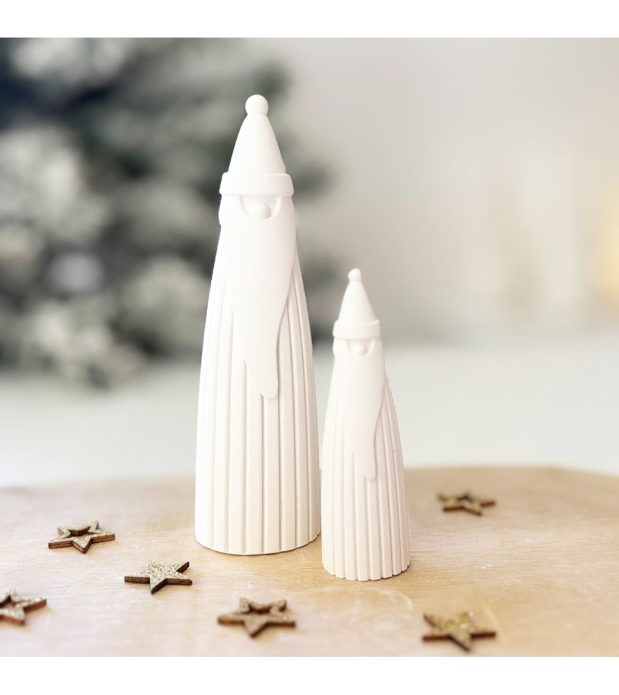 Apportez une touche scandinave et raffinée à votre décoration de fêtes avec ce duo de Pères Noël décoratifs imaginé par Atelier Roz & Lou.