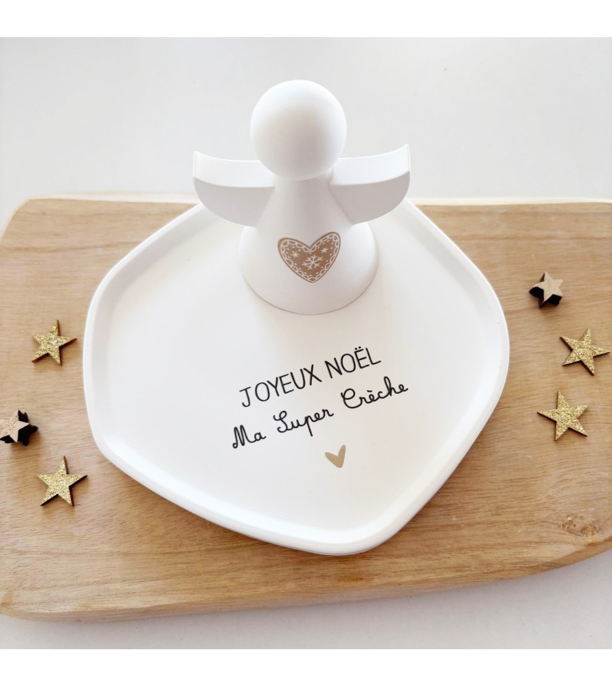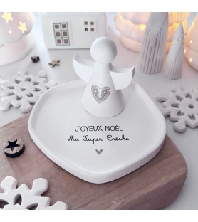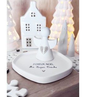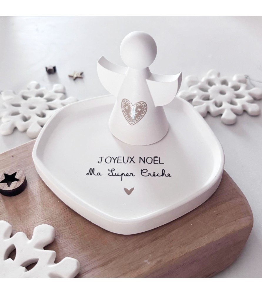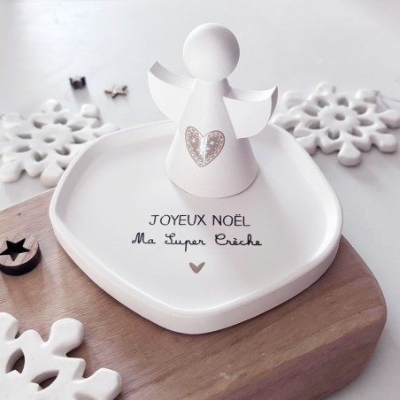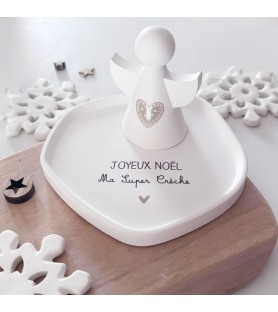 Offrez un cadeau unique et rempli de tendresse avec cette coupelle “Joyeux Noël” accompagnée de sa figurine ange amovible, imaginée par Atelier Roz & Lou.