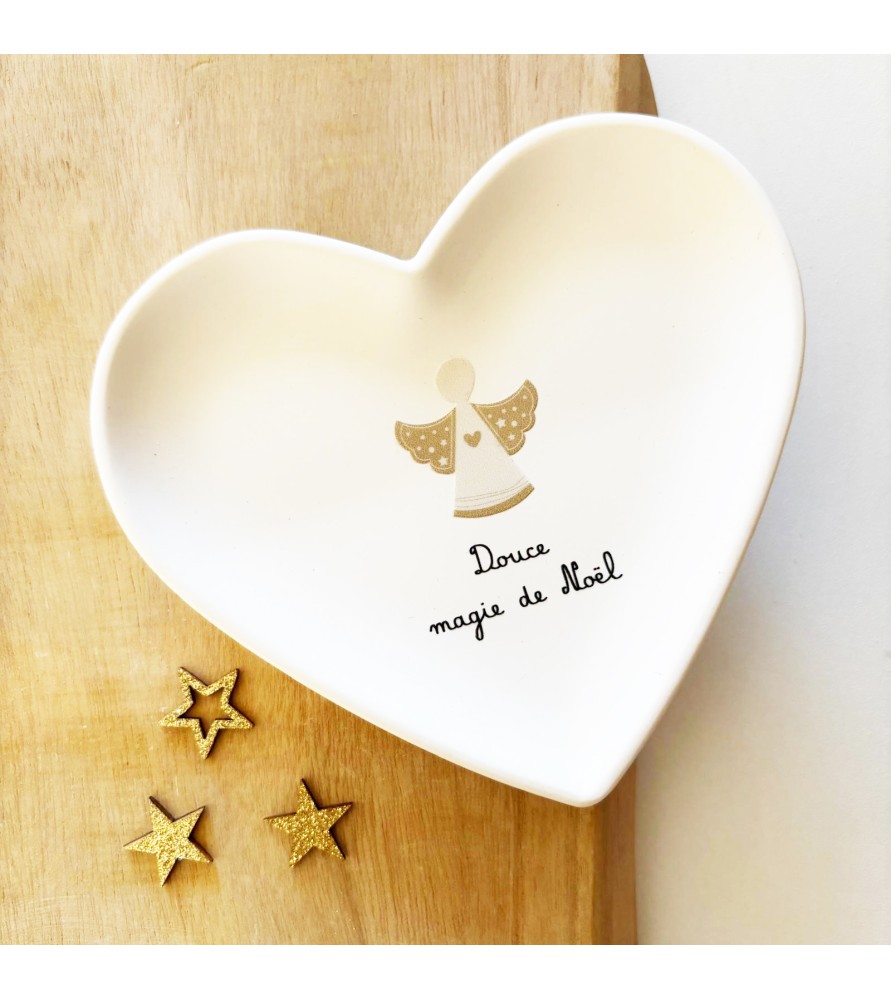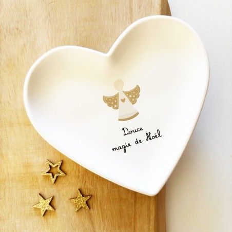 Cette coupelle cœur “Douce magie de Noël” incarne toute la douceur et la poésie d’un Noël enchanteur. Réalisée à la main dans l’atelier Roz & Lou, elle allie élégance et simplicité pour sublimer votre intérieur durant les fêtes.