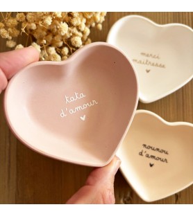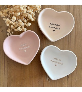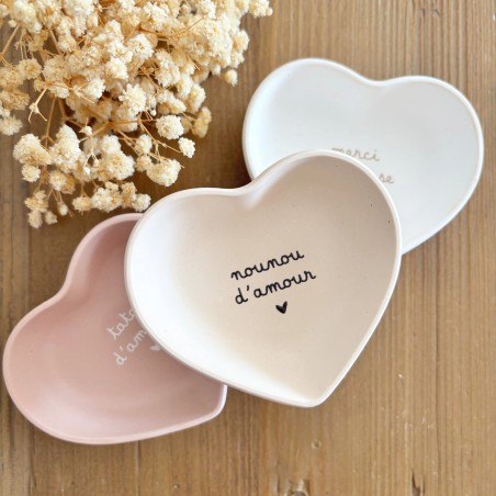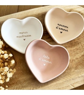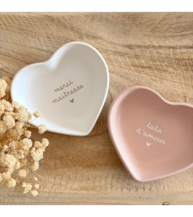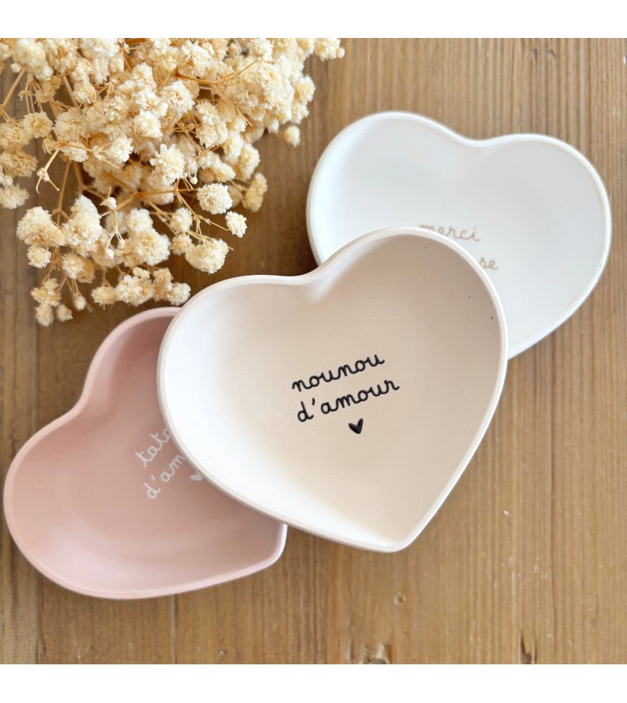 Une jolie coupelle en forme de cœur, douce et délicate, parfaite pour offrir à celles qui comptent tant.