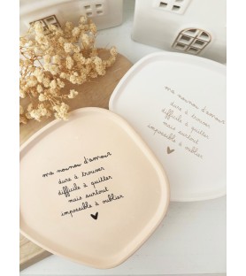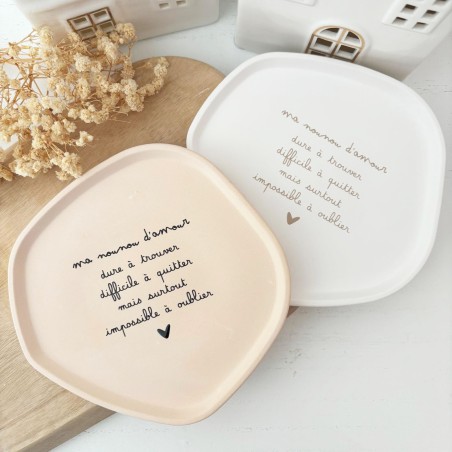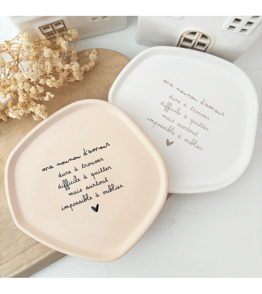 Découvrez notre coupelle en résine naturelle, entièrement fabriquée à la main dans notre atelier Roz & Lou Un objet à la fois décoratif et plein de tendresse, idéal pour remercier une nounou avec douceur et élégance.
