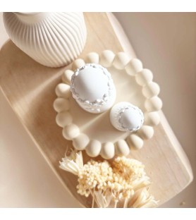 Doux et délicat, cet ensemble composé d’une coupelle et d’un petit pot est une tendre déclaration à poser au quotidien. Une création artisanale pensée pour accueillir les petits trésors tout en apportant une touche poétique à la décoration.