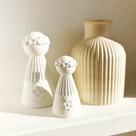 Le lot se compose de deux figurines de tailles différentes, pensées pour être exposées ensemble afin de créer un joli jeu de volumes et d’harmonie. Elles peuvent être posées sur une étagère, une table de chevet, une console ou intégrées à une décoration plus large.