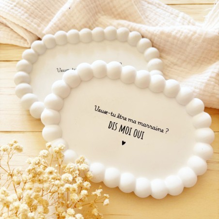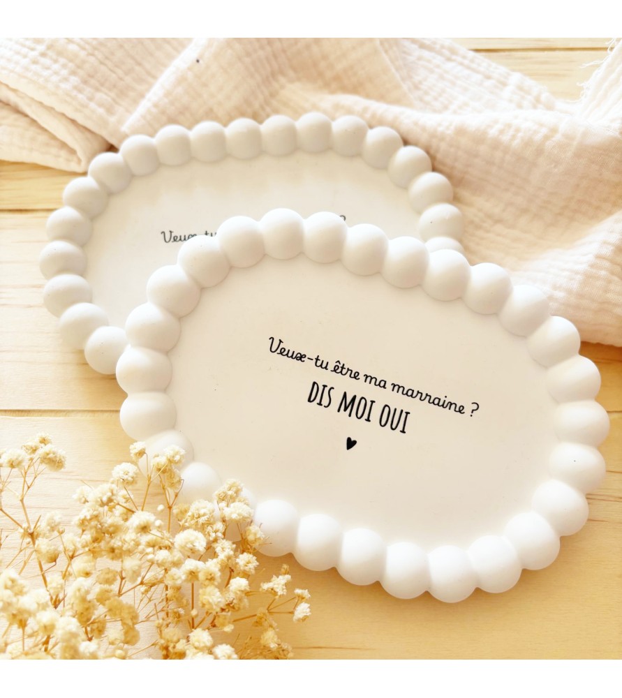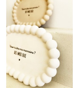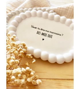 Faites de la demande de parrain ou marraine un moment unique et inoubliable grâce à notre coupelle ovale à contour perlé. Conçue en résine naturelle de qualité, cette création associe douceur, élégance et originalité.